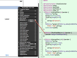 12. 라벨의 링크를 ViewController.m파일에 추가하여 원하는 작업함